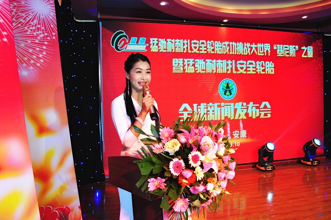 汉滨区公证处公证员柯晓玲对“猛驰”耐刺扎安全轮胎挑战扎钉7700次及安全行驶202公里予以公证认可。今天上午10时,大世界基尼斯总部关玥部长专程赶来安康为其颁发挑战成功证书。