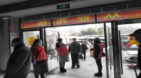 “那还是麻烦您再测一次,配合一下我们的工作,超市人流量比较大,我们也是为了大家的安全考虑。”两人面带微笑认真履责,耐心为大爷测过体温并指导他购物。