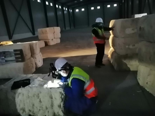 2月2日,市检验检测中心接到了中国纤维质量中心下达的中储棉山东诸城有限公司的国家储备棉入库公证检验任务通知。此次待检的棉花均是进口棉,已到港7000吨亟待入库,待检期又遇新冠肺炎疫情防控关键时期,时间紧、任务重、挑战大。