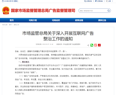 市场监管总局关于深入开展互联网广告整治工作的通知