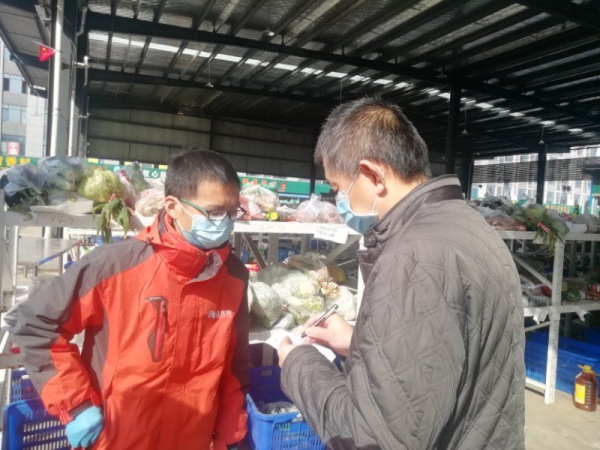 执法人员对城区菜品配送点价格行为进行督导检查