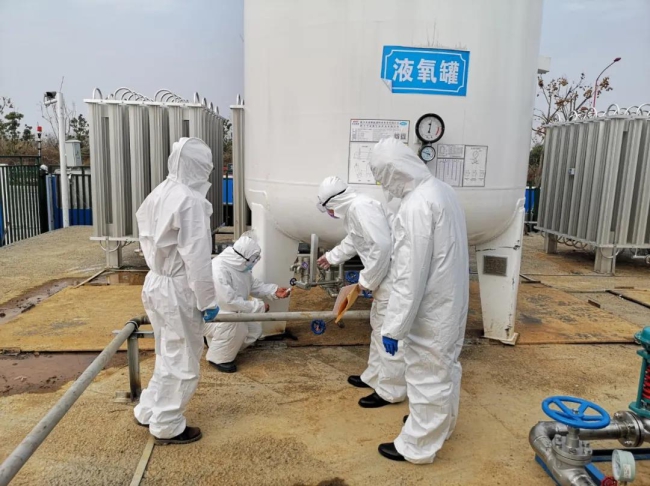 2月24日下午14时50分,湖北省武汉市江夏区市场监管局特种设备安全执法人员,身穿隔离衣,面戴护目镜和口罩,深入雷神山医院特种设备重地,例行执法检查。经检查,6台医用液氧储罐、12个安全阀、18块压力表全部运行正常。
