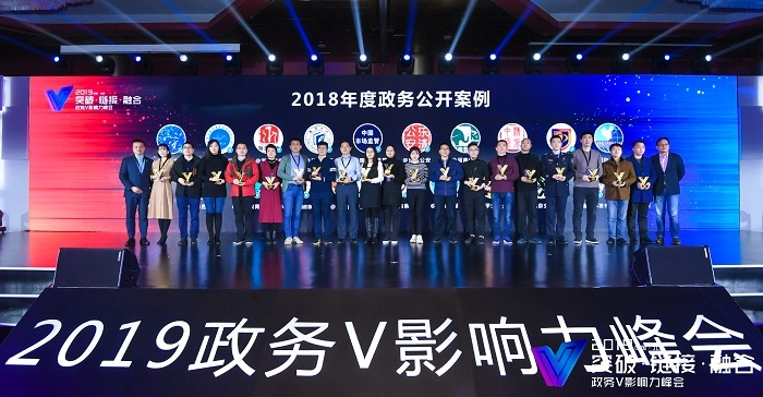1月22日,由人民日报主办,微博、新浪网承办的“突破·链接·融合—2019政务V影响力峰会”在北京举行,回顾2018年度全国政务机构在塑造城市品牌形象和创新政务传播形式方面取得的成绩,对2018年度表现突出的优秀政务微博发展模式予以总结与分享。市场监管总局官方微博“中国市场监管”,针对权健保健品事件发声并发布《关于开展联合整治“保健”市场乱象百日行动的公告》,为推进保健品市场秩序整顿营造良好舆论氛围,获得2018年度政务公开案例奖。